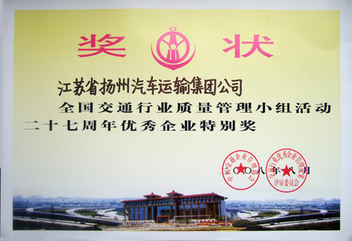 全國交通行業(yè)質(zhì)量管理小組活動二十七周年優(yōu)秀企業(yè)特別獎獎狀