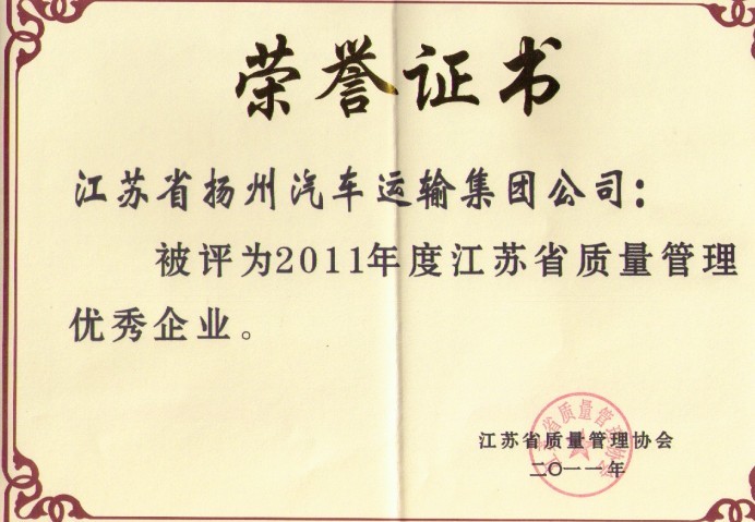集團公司榮獲2011年江蘇省質(zhì)量管理優(yōu)秀企業(yè)稱號