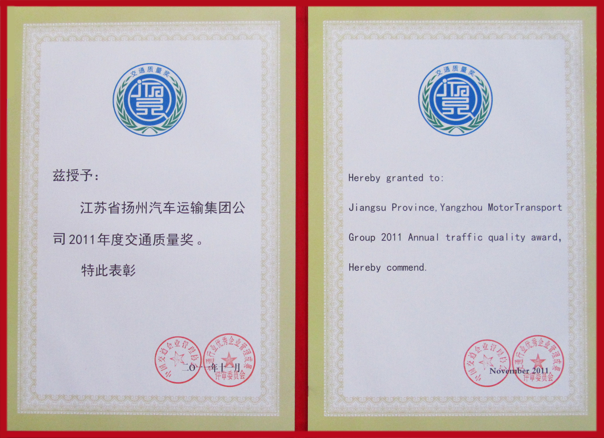 公司喜得交通質(zhì)量獎