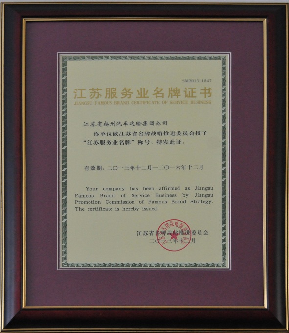 近年來(lái),公司積極貫徹省政府關(guān)于加快現(xiàn)代服務(wù)業(yè)發(fā)展的要求,大力實(shí)施文化與品牌發(fā)展戰(zhàn)略,始終堅(jiān)持把爭(zhēng)創(chuàng)企業(yè)名牌、推進(jìn)揚(yáng)汽品牌發(fā)展作為一項(xiàng)系統(tǒng)工程來(lái)抓,堅(jiān)持品牌建設(shè)與品牌經(jīng)營(yíng)相結(jié)合,提升“揚(yáng)汽品牌”的市場(chǎng)知名度,促進(jìn)企業(yè)健康穩(wěn)定持續(xù)發(fā)展。2013年在申報(bào)江蘇服務(wù)業(yè)名牌工作過(guò)程中,公司依據(jù)《江蘇省名牌產(chǎn)品管理辦法》規(guī)定,圍繞企業(yè)領(lǐng)導(dǎo)、戰(zhàn)略、顧客與市場(chǎng)、資源、過(guò)程管理、測(cè)量分析與改進(jìn)以及經(jīng)營(yíng)結(jié)果等七個(gè)方面考評(píng)內(nèi)容進(jìn)行系統(tǒng)申報(bào),自2013年7月開(kāi)始,歷時(shí)數(shù)月,經(jīng)嚴(yán)格篩選最終當(dāng)選。