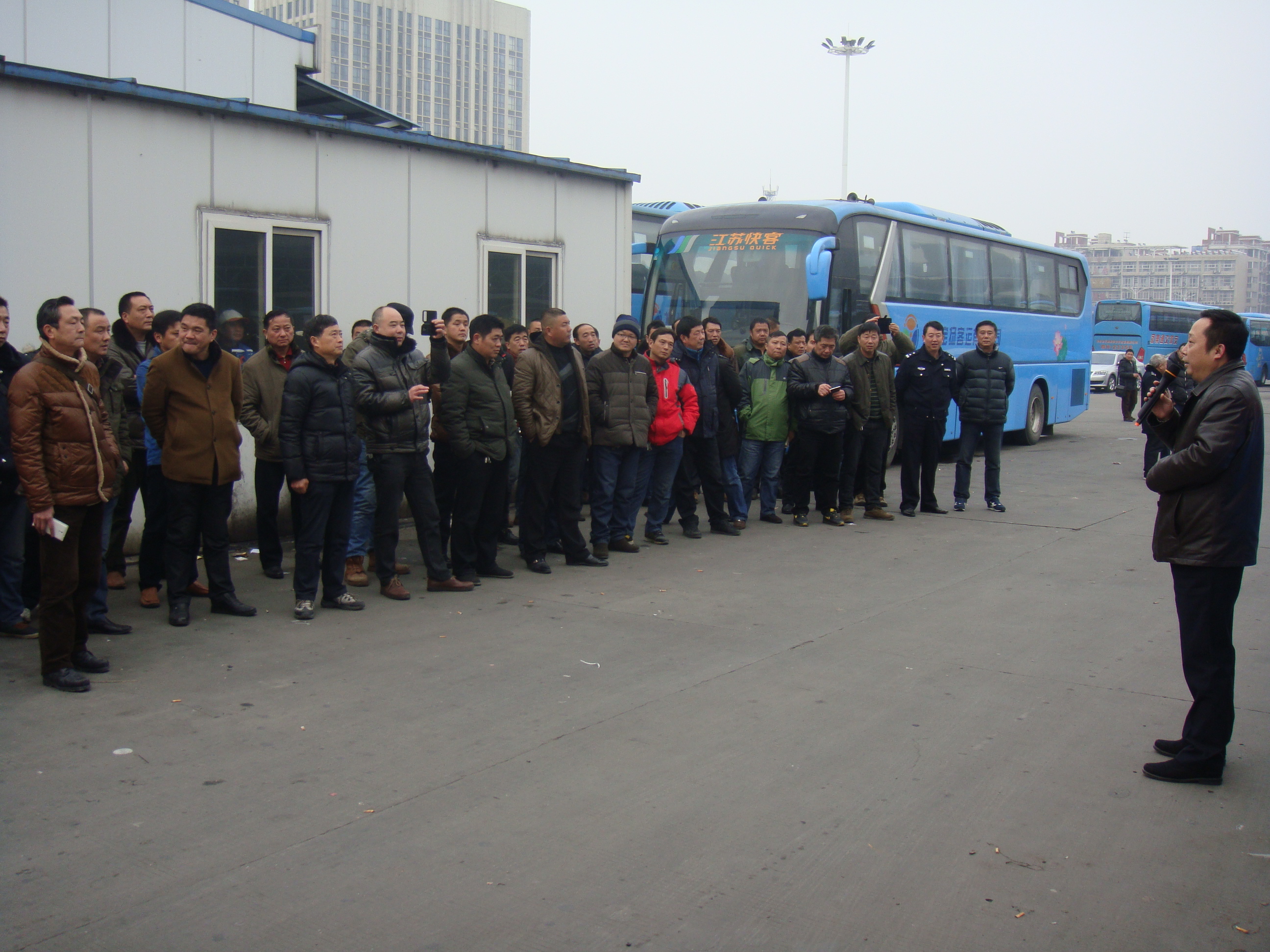 2月3日,春運(yùn)前夕,集團(tuán)公司聯(lián)合市運(yùn)管處在揚(yáng)州汽車西站舉辦惡劣天氣應(yīng)急預(yù)案演練活動(dòng)?偨(jīng)理助理萬雷,安全機(jī)務(wù)處人員以及來自全司各客運(yùn)單位安全經(jīng)理、安全員、機(jī)務(wù)員、駕駛員代表計(jì)70余人參加了活動(dòng)。副總經(jīng)理談衛(wèi)國指揮演練,市運(yùn)管處書記徐才祥、市交通產(chǎn)業(yè)集團(tuán)副總經(jīng)理王寧生分別對(duì)本次演練進(jìn)行了點(diǎn)評(píng),并對(duì)即將到來的春運(yùn)安全生產(chǎn)工作作了重要講話。演練還邀請(qǐng)了市交巡警支隊(duì)一大隊(duì)同志現(xiàn)場(chǎng)觀摩指導(dǎo)。