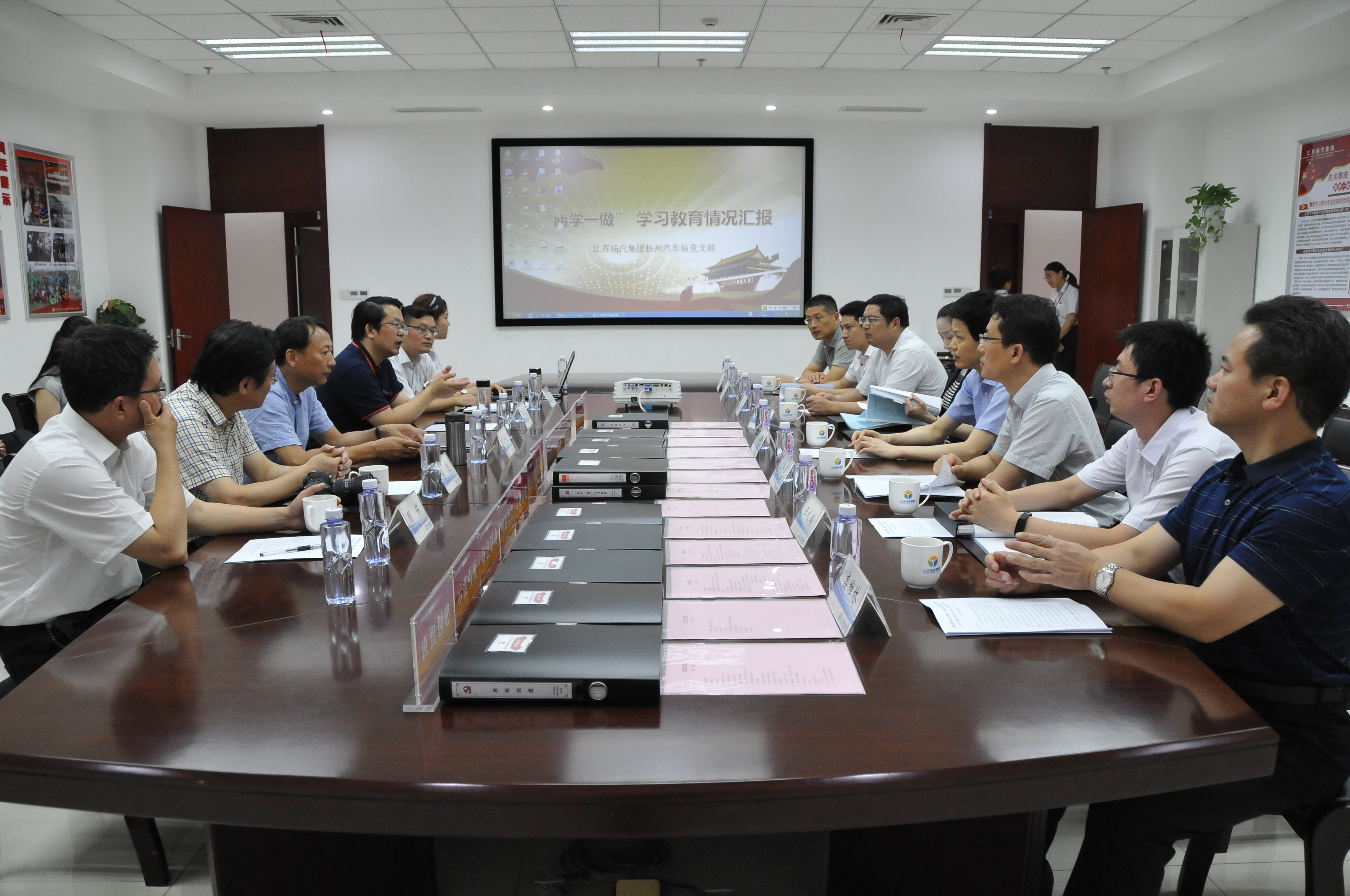 陸部長一行實地查看了揚州站黨支部的黨員活動室,并在活動室與揚州站黨支部的同志進行了座談。揚州站黨支部書記凌國軍,向督察組匯報了揚州站黨支部在“兩學(xué)一做”推進過程中,如何圍繞企業(yè)轉(zhuǎn)型升級開展黨建工作的體會和成績。督查組還認真查看了支部工作臺賬資料。督察組表示,揚州站黨支部在“兩學(xué)一做”學(xué)習教育過程中,活動豐富、臺賬健全、效果明顯,看到基層支部能將“兩學(xué)一做”工作這樣抓實做細感到非常欣慰。