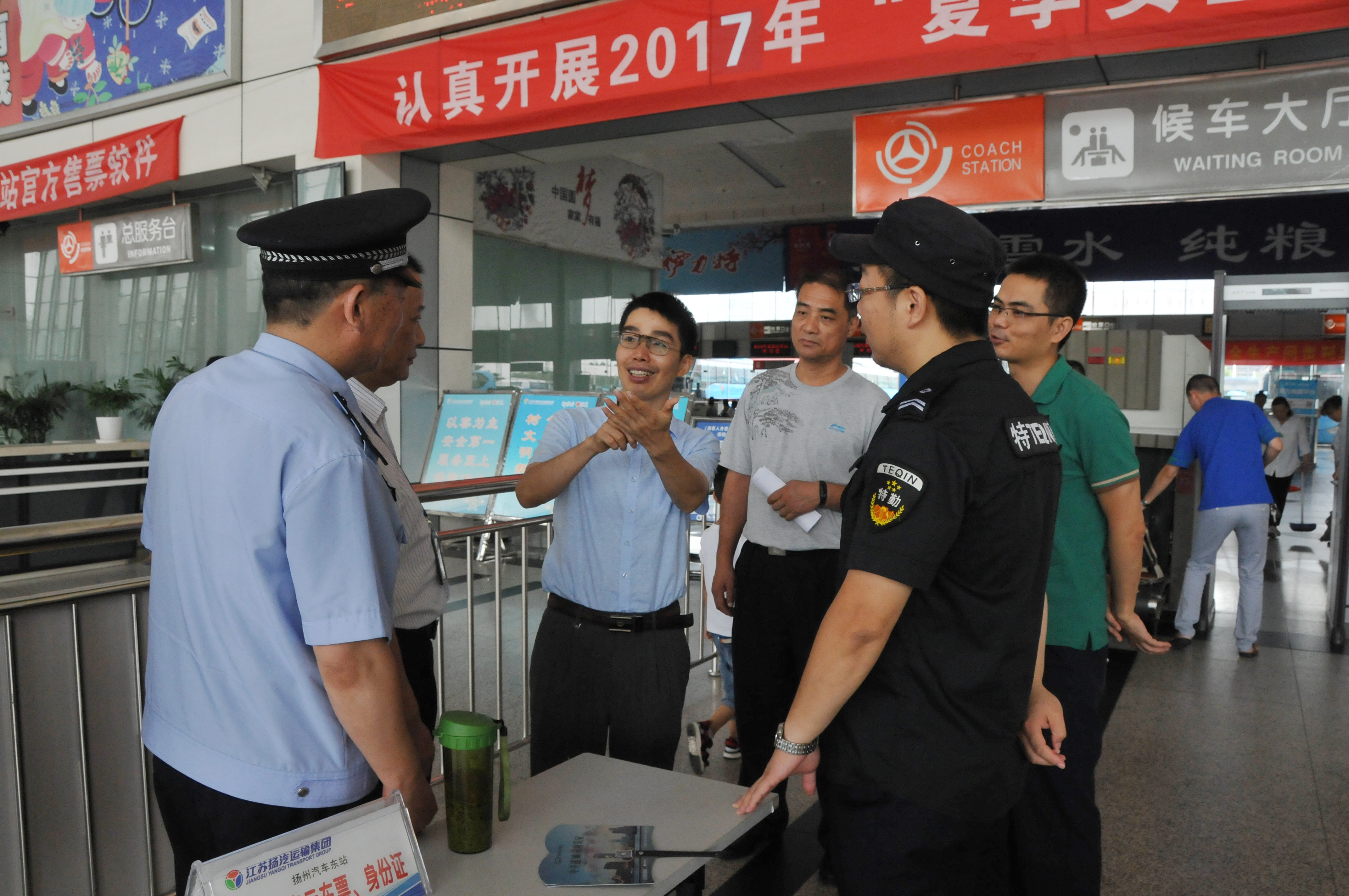 8月3日上午,省運管局和省公安廳組成的聯(lián)合檢查組,在省運管局副局長李云飛帶領下,對東站和揚州站的安全工作進行檢查。揚州市運管處黨總支書記徐才祥及相關人員陪同。檢查組深入東、西兩站的生產工作現(xiàn)場,重點針對實名制購票、三不進站六不出站進行檢查。檢查組還抽查了多輛班車,對班車的安全錘、安全帶配置,安全短片播放設備等逐一檢查,并對車輛駕駛員進行詢問,了解駕駛人員對崗位安全工作流程的掌握情況。