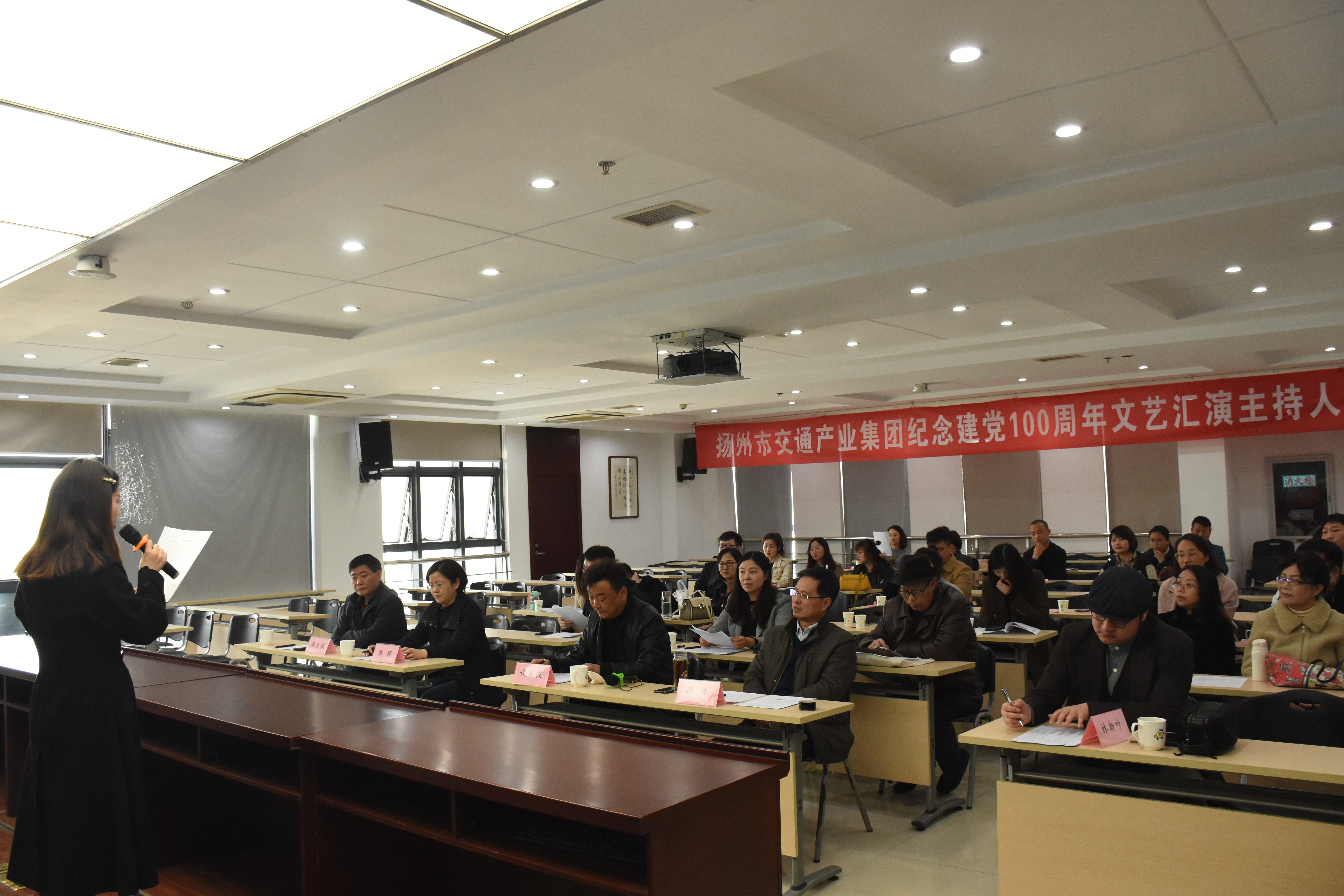 為籌備好慶祝建黨100周年文藝匯演,4月8日下午,文藝匯演的主持人選拔賽在揚(yáng)汽集團(tuán)教培中心舉行,來(lái)自交通產(chǎn)業(yè)系統(tǒng)內(nèi)的19名參賽選手在這里進(jìn)行了激烈的角逐。交通產(chǎn)業(yè)集團(tuán)黨委副書(shū)記張穎,副總經(jīng)理、工會(huì)主席吳忠俊,揚(yáng)汽集團(tuán)黨委副書(shū)記、工會(huì)主席顧懷、導(dǎo)演談家俊擔(dān)任本次主持人選拔賽的評(píng)委。