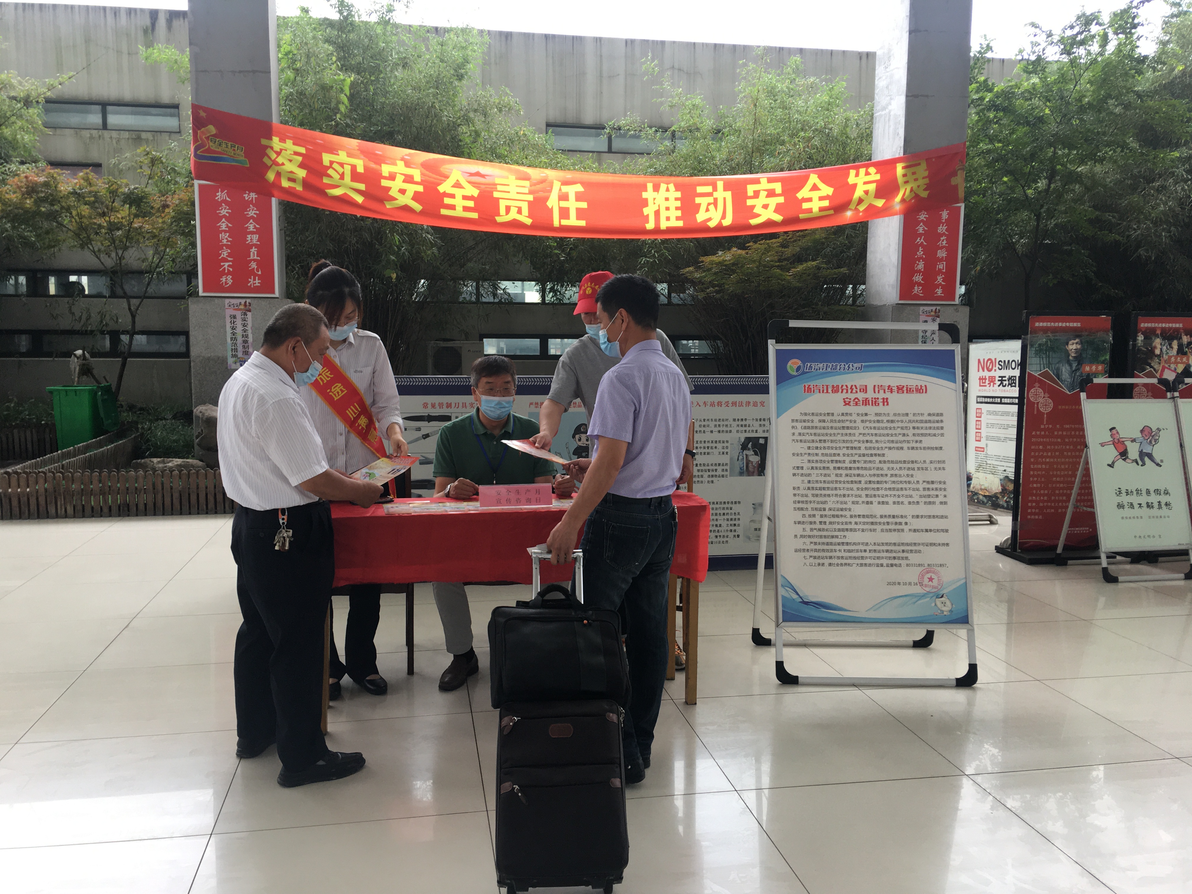 6月17日,集團(tuán)所屬汽車客運(yùn)站在確保疫情防控安全的前提下,在車站大廳內(nèi)設(shè)立了安全生產(chǎn)宣傳服務(wù)臺(tái),各部門、各單位由分管安全領(lǐng)導(dǎo)帶隊(duì),通過安全生產(chǎn)月咨詢?nèi)栈顒?dòng),集中向一線職工、來往旅客們發(fā)放安全生產(chǎn)法律法規(guī)宣傳資料,宣傳黨和國家安全生產(chǎn)方針政策,傳遞安全理念,全力營造關(guān)注安全、關(guān)愛生命的濃厚氛圍。
