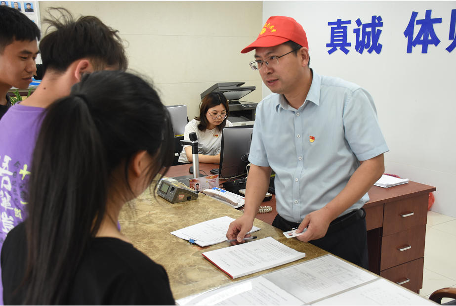 在報(bào)名大廳的服務(wù)現(xiàn)場(chǎng),龔宇峰為前來學(xué)駕的學(xué)員登記報(bào)名信息,辦理手續(xù),并與他們交談,耐心解答他們的問題、囑咐在學(xué)習(xí)駕駛過程中需要注意的事項(xiàng)。