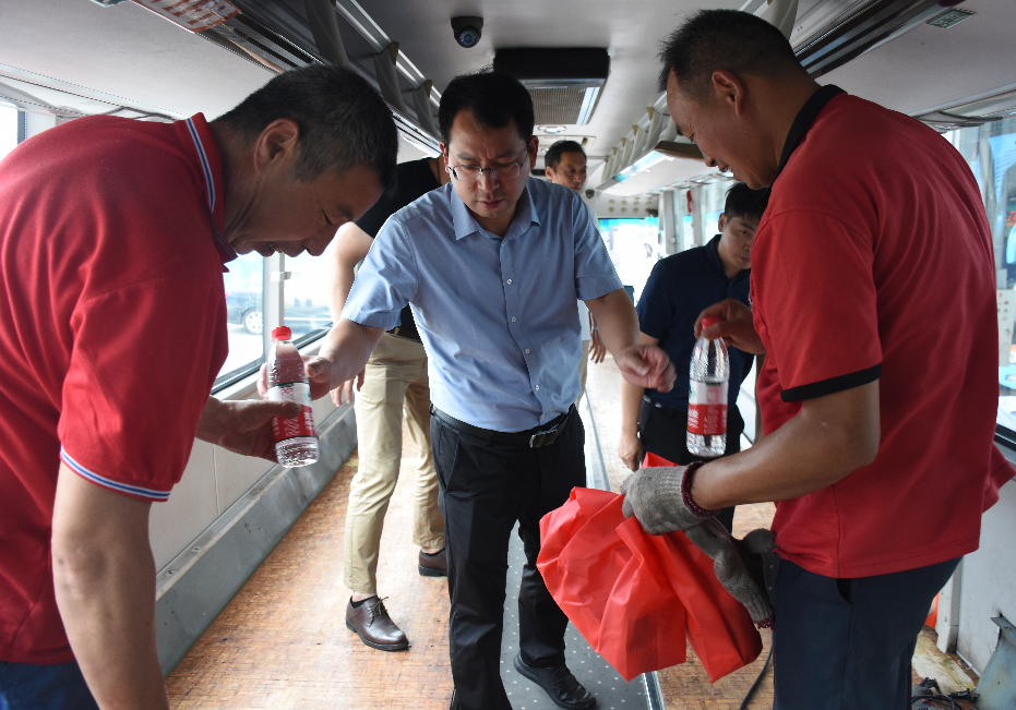 為認真貫徹落實習近平總書記關于安全生產(chǎn)工作的重要指示精神,扎實做好夏季安全生產(chǎn)工作,保障廣大職工在生產(chǎn)過程中的安全和健康,7月22日中午,市交通產(chǎn)業(yè)集團副總經(jīng)理、揚汽集團黨委書記、董事長龔宇峰利用午休時間到修理廠,對奮戰(zhàn)在高溫一線,加班加點趕制新冠疫苗接種服務車的職工進行慰問。