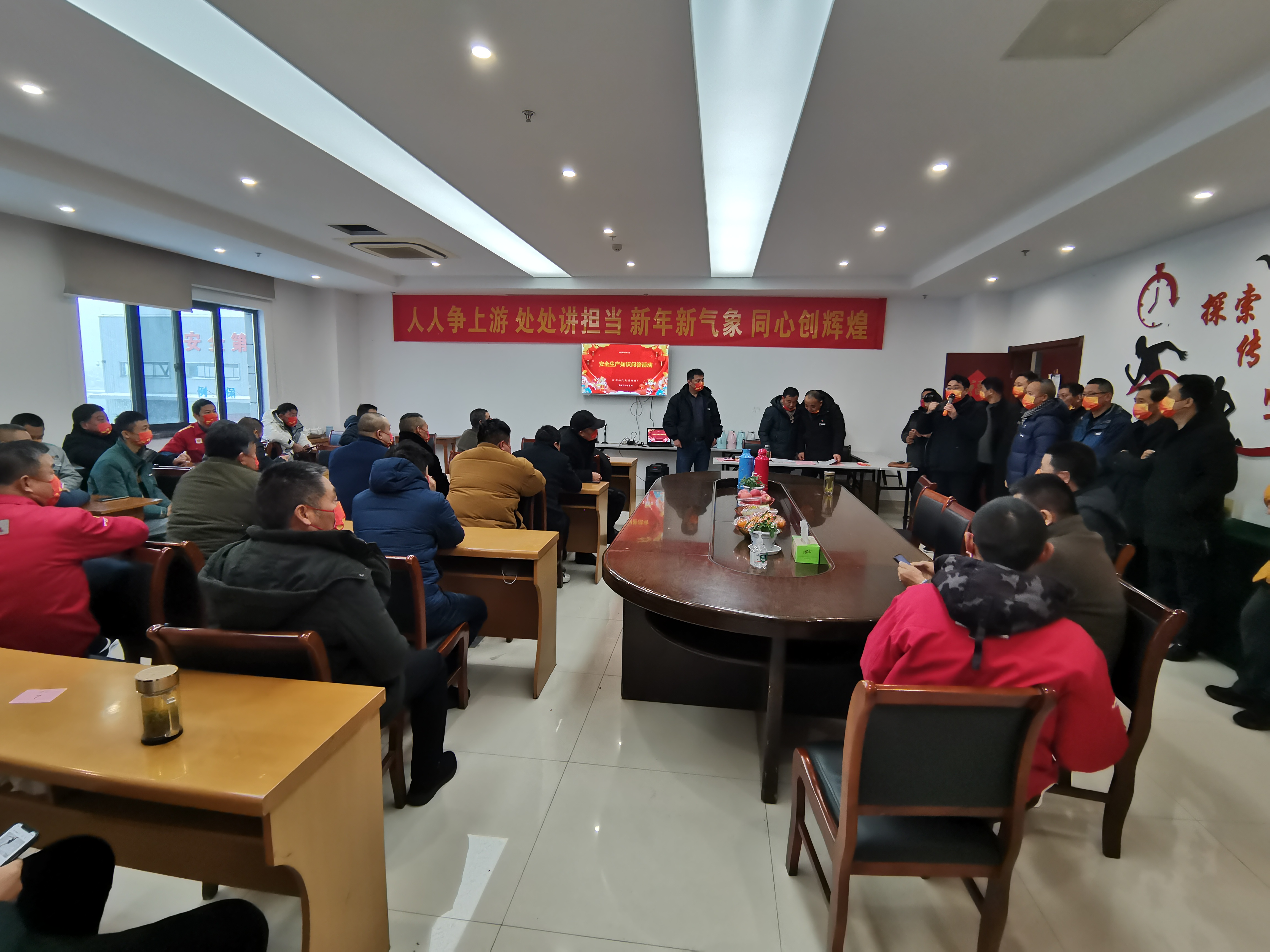 活動(dòng)中,修理廠負(fù)責(zé)人首先向廠部全體干部職工致以新春的問候和美好的祝福,對上一年來的辛勤付出表示感謝。隨后,本次“安全生產(chǎn)知識(shí)問答”正式拉開序幕 ,大家爭先搶答,踴躍答題,過程非常激烈,進(jìn)一步增強(qiáng)大家的安全生產(chǎn)意識(shí)。