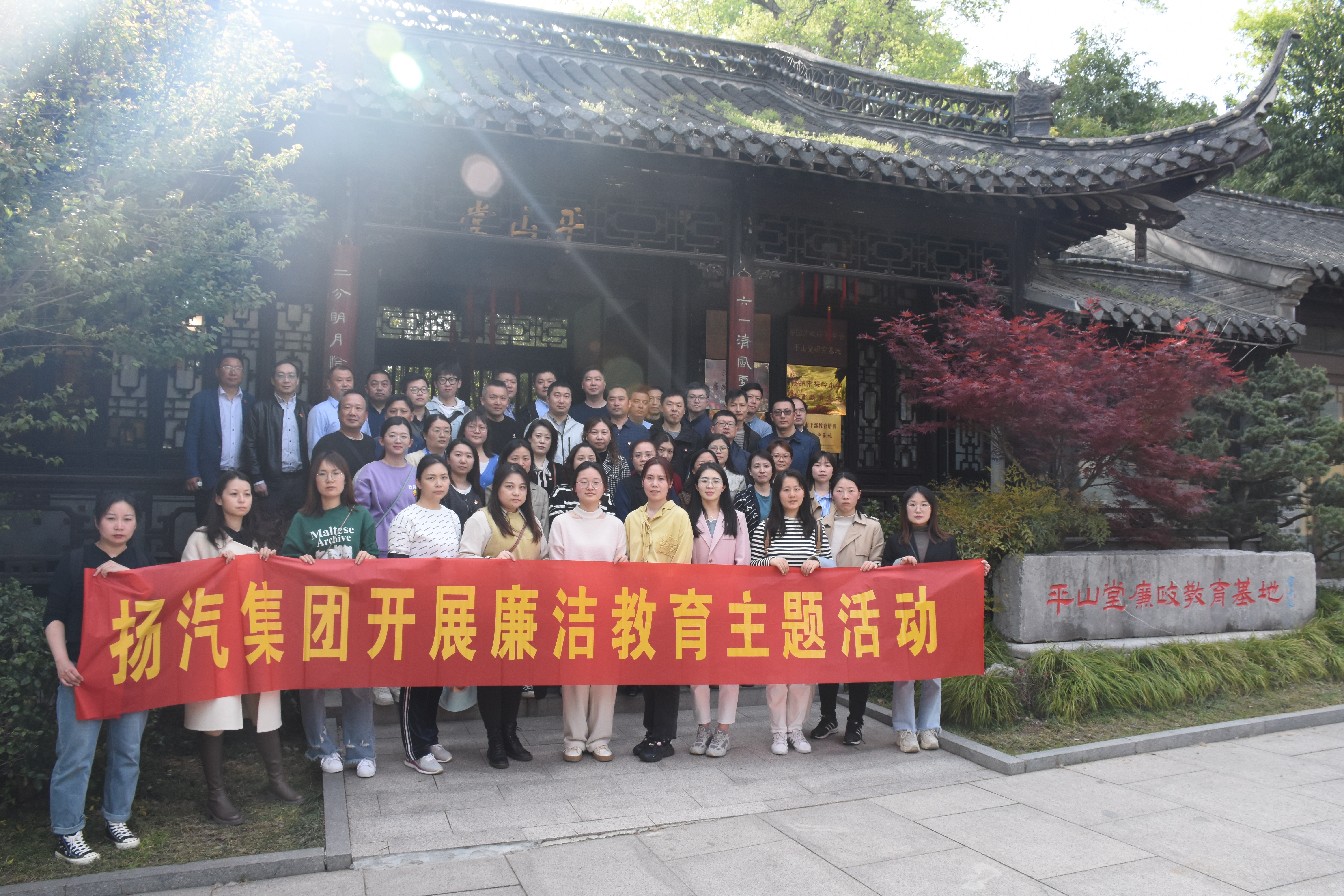 為學習貫徹黨的二十大精神,進一步提高干部職工廉潔意識,大力營造廉潔誠信、風清氣正的良好氛圍,4月10日,揚汽集團組織部分中層干部、后備骨干、新進大學生50余人前往平山堂廉政教育基地參觀學習,實地接受廉潔教育。
