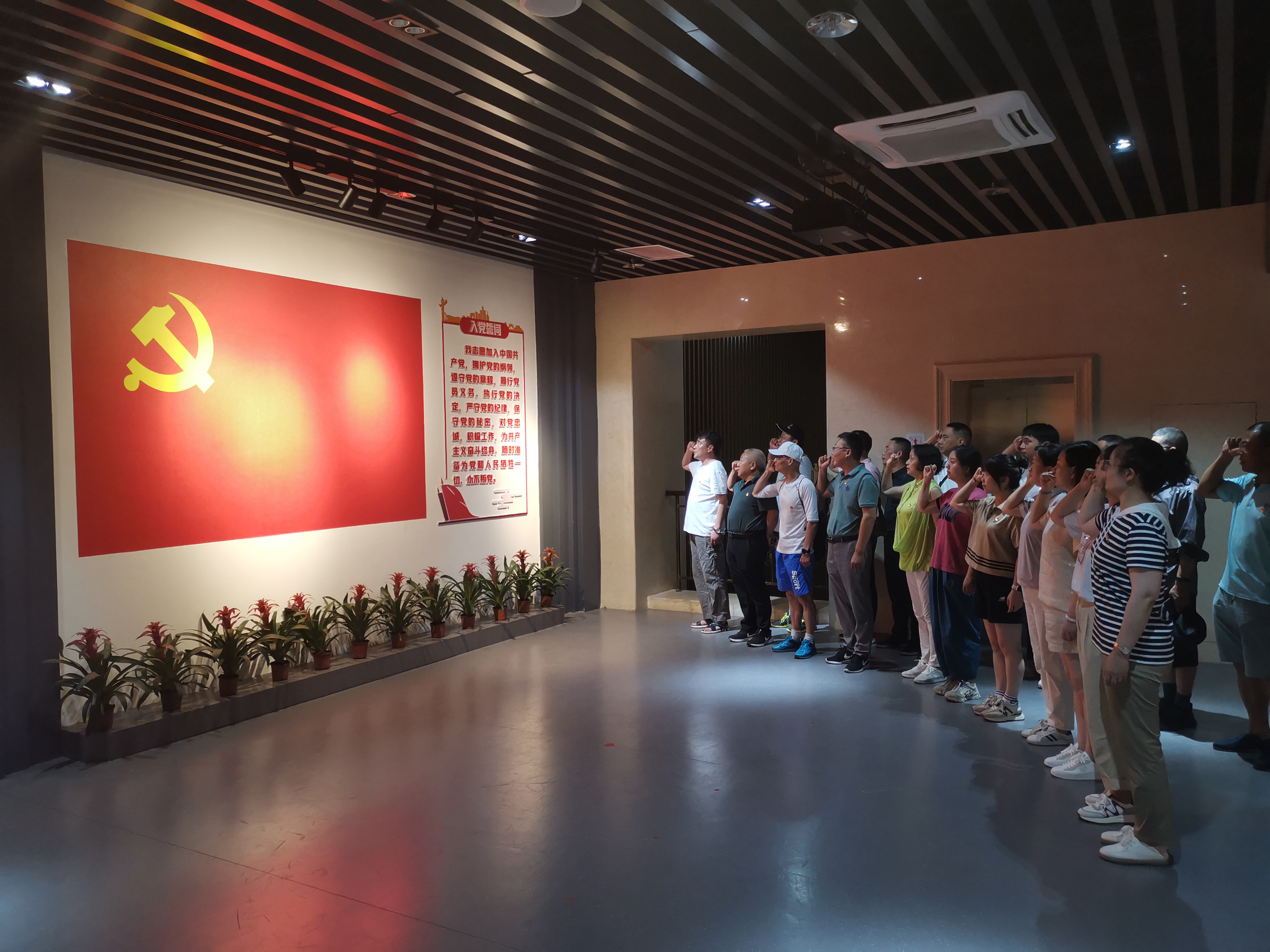 在紀(jì)念館內(nèi)的宣誓墻前,全體黨員向黨旗莊嚴(yán)宣誓,鏗鏘的誓言擲地有聲,以飽滿的激情和聲音發(fā)出了身為共產(chǎn)黨員的自豪感和使命感,激發(fā)著大家干事創(chuàng)業(yè)的澎湃熱情。