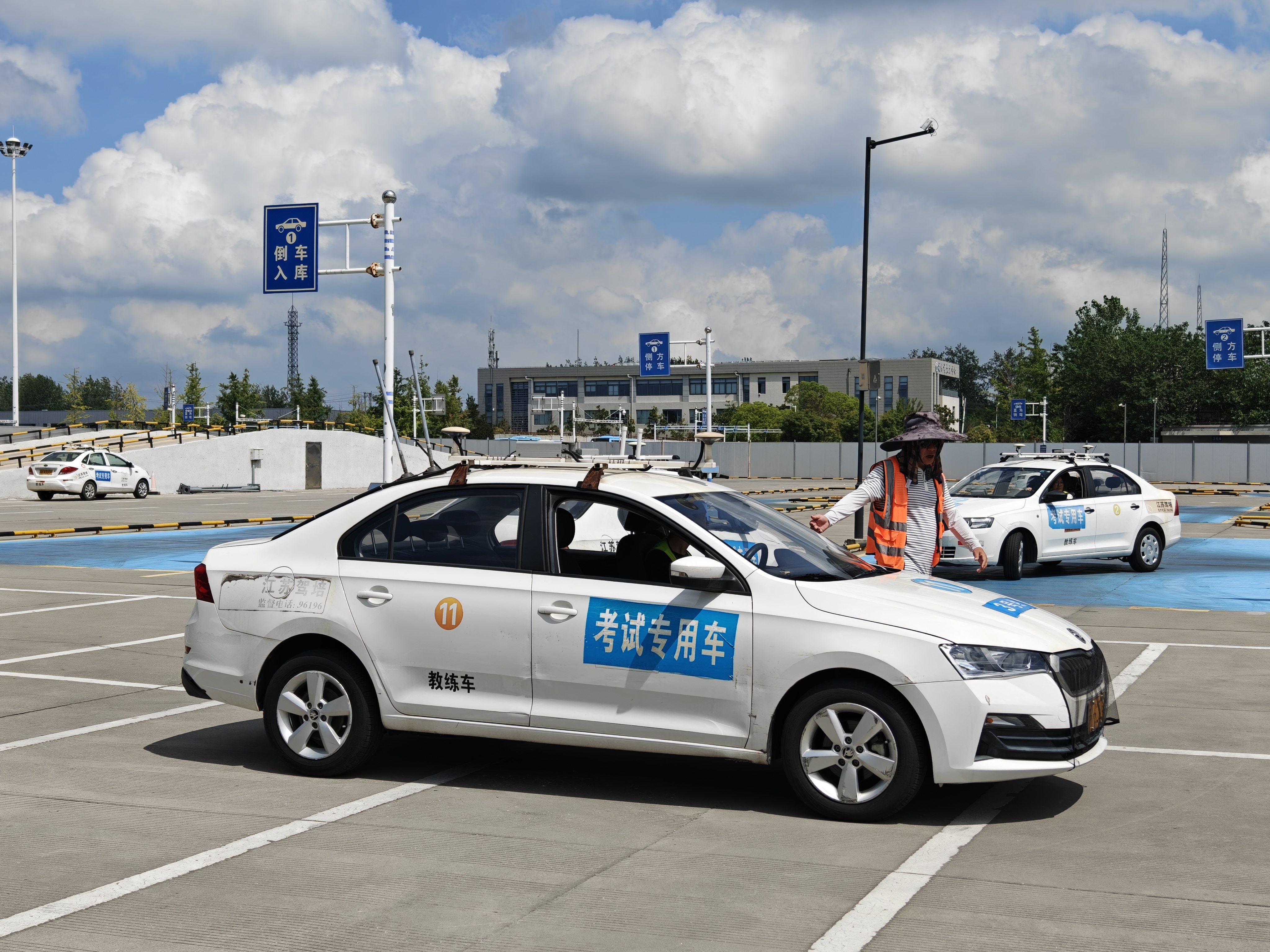 科目二、科目三考場內(nèi),貼心的服務(wù)與堅守的身影同樣動人。為改善考生候考體驗,考場等候區(qū)大功率風(fēng)扇持續(xù)運(yùn)轉(zhuǎn),空調(diào)全天開放,飲用水供應(yīng)充足。每日清晨七點(diǎn)多,安全引車員們便已提前到崗,細(xì)致檢查考試線路、測試車輛性能、調(diào)試系統(tǒng),為全天考試保駕護(hù)航?荚嚵鞒痰奶厥庑,讓他們無法避開高溫時段。正午時分,他們依然頭頂烈日,堅守崗位;午飯時間,大家輪流就餐,確保考試無縫銜接,只為最大限度縮短考生的等候時間。